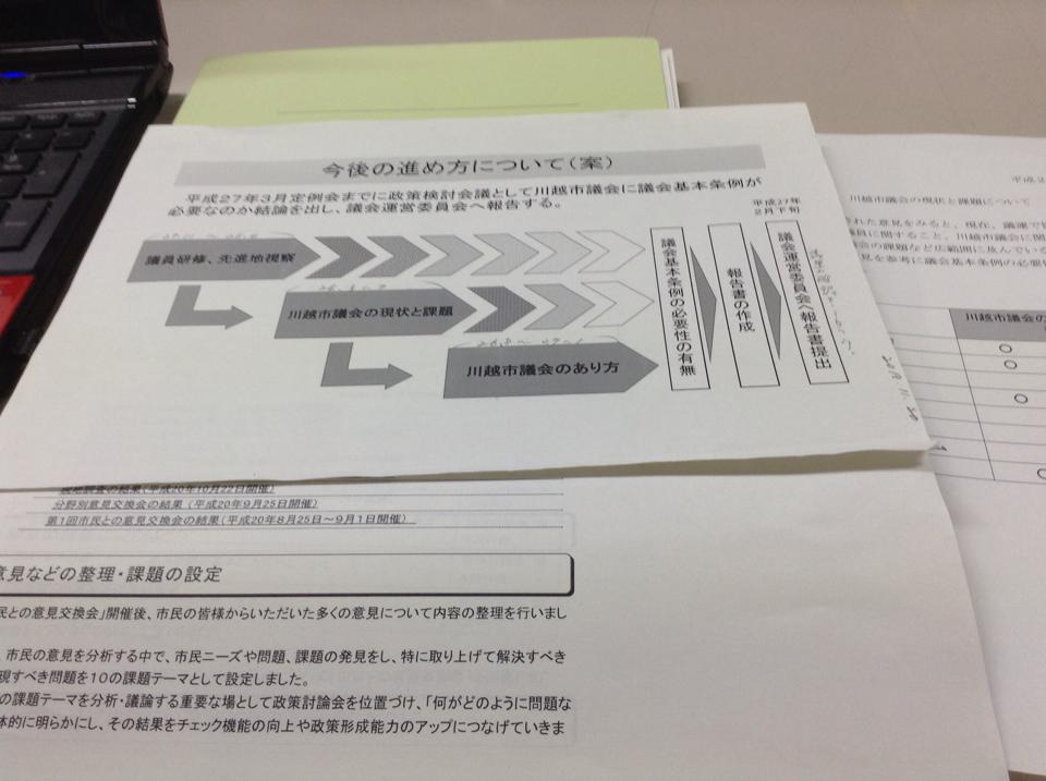 政策検討委員会 川越市議会に議会基本条例は必要か・・・・ 議会運営委員会から諮問を受けて昨年から検討を続けている議会基本条例! 5月7・8日に米沢市・会津若松市にお邪魔してお話を伺って来ました。それらを踏まえて今後の進め方等を話し合いました。