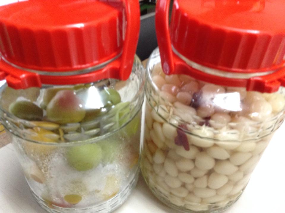 過日チクチクして冷凍しておいた梅の実を、氷砂糖で漬け込んで梅シロップを作ります。 一週間ぐらいしたら、氷砂糖が溶けて梅のエキスが出てくれば出来上がり。 4倍の水や炭酸水で割って頂きます。牛乳で割ってもgoodです。