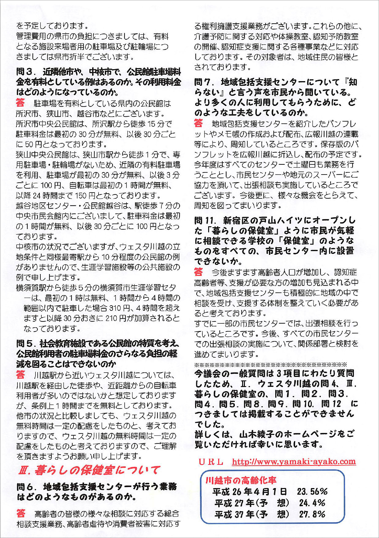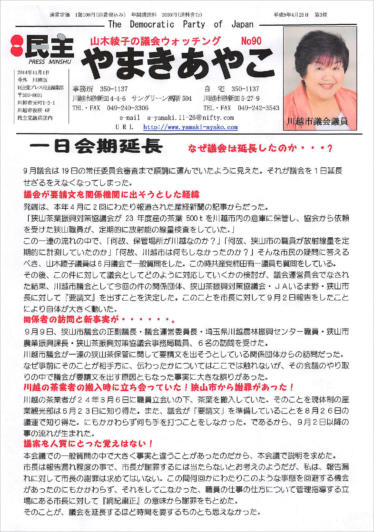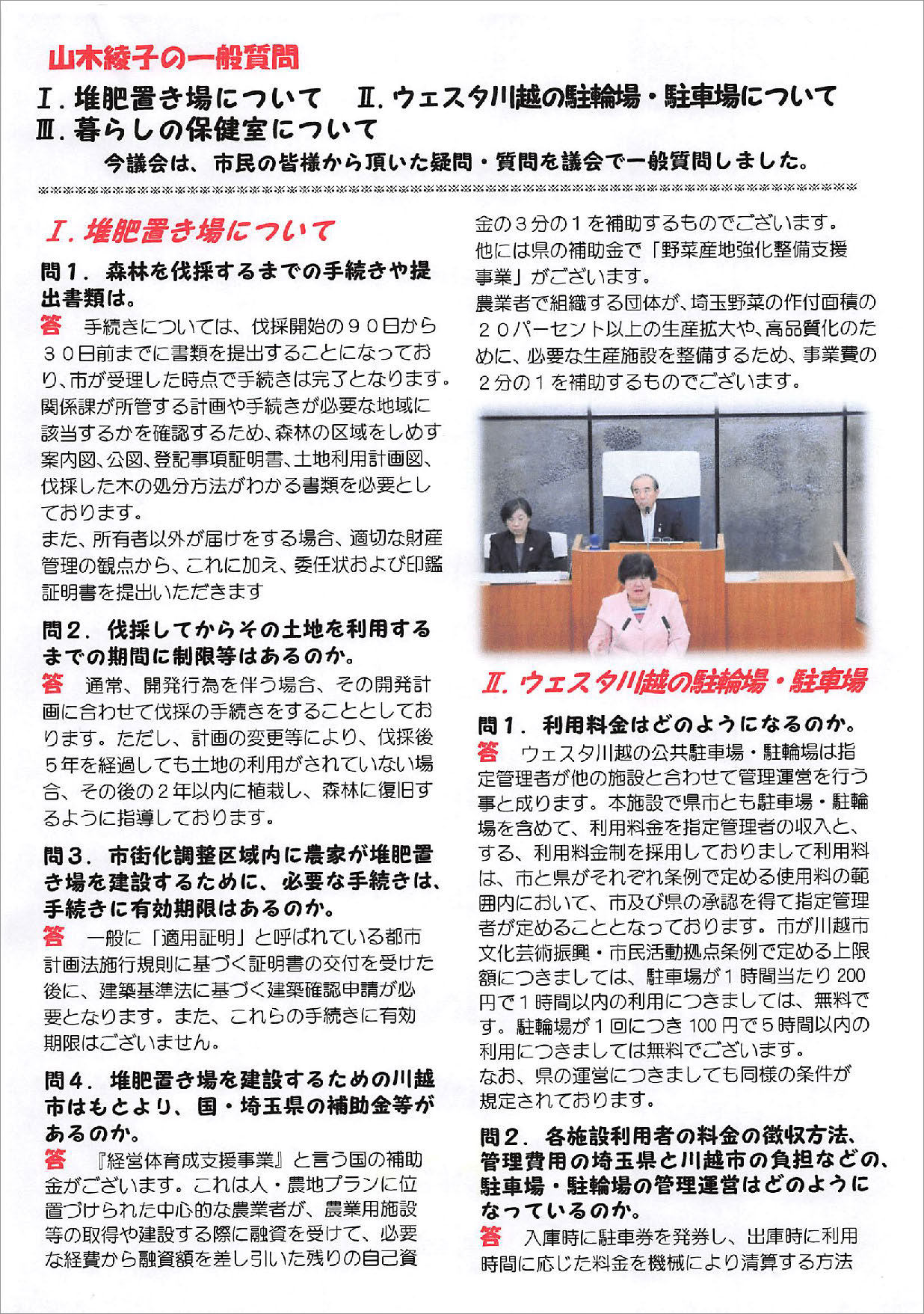やまきあやこ – 川越市議会議員 は「忘れない」・「染まらない」・「流されない」を信条に、皆様にお約束したことの実現に市議会で、精一杯発言しています。