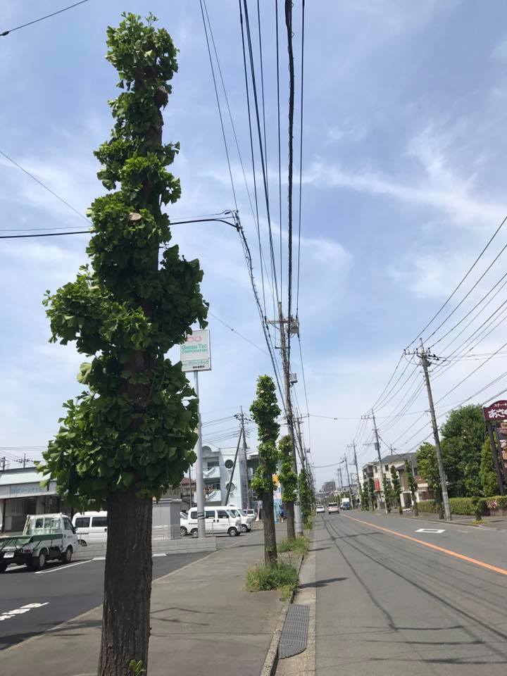 強剪定された銀杏並木。