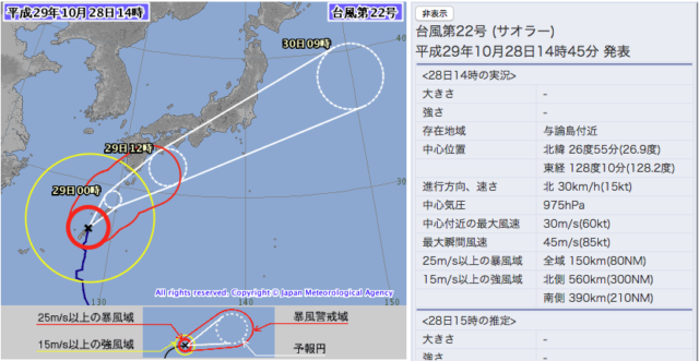 片ずけが満足に進まない中、台風22号が発生し、列島に近づいて来ています。