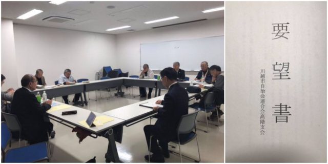 地元の高階支会が川越市に対して要望書を出したい。という事で、地元選出の4人の議員と支会の常任理事の皆さんと話し合いの場を設けました。