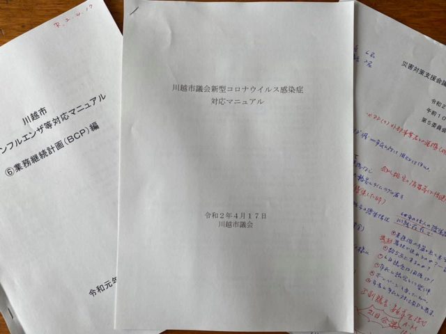川越市は今回の新型コロナウェルス対策を「新型インフルエンザ対応マニアル」の業務継続計画(BCP)に添って対応しています。
