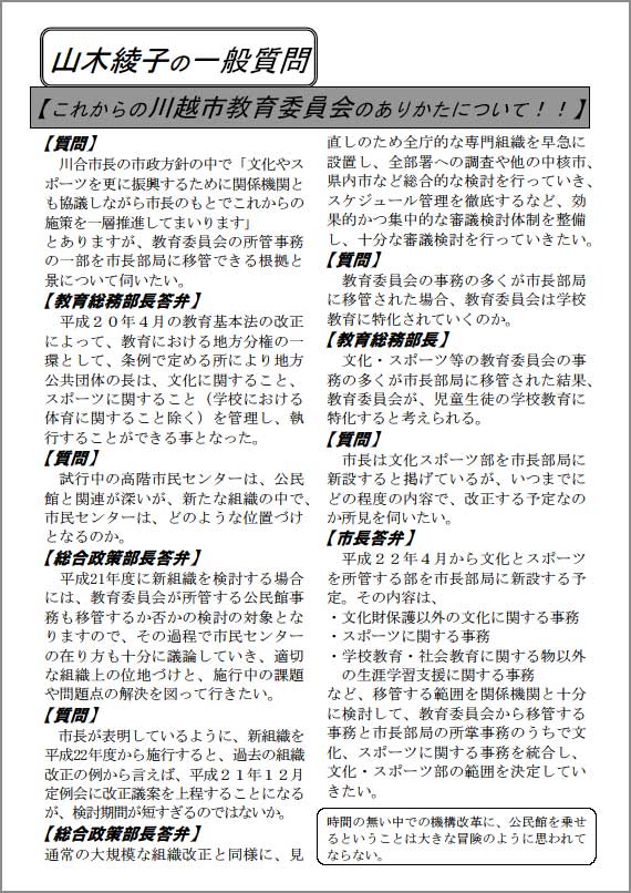 議案質疑 – やまきあやこレポート