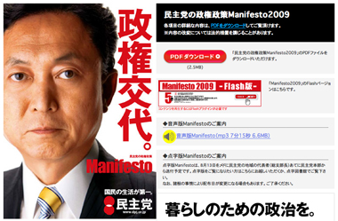 民主党マニフェストを↓のリンクからダウンロードして頂くことができます。