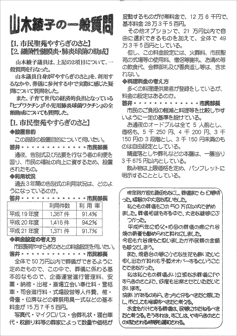 議案質疑 – やまきあやこレポート