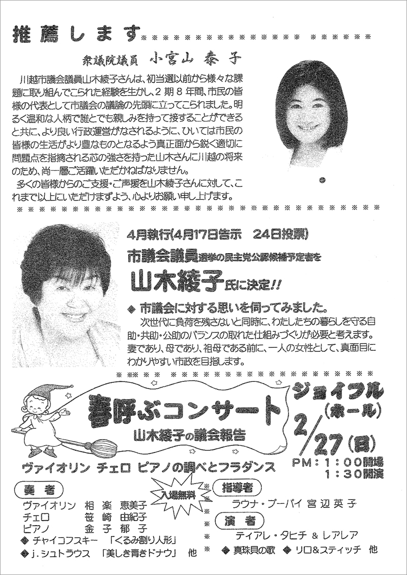 やまきあやこ – 川越市議会議員 は「忘れない」・「染まらない」・「流されない」を信条に、皆様にお約束したことの実現に市議会で、精一杯発言しています。