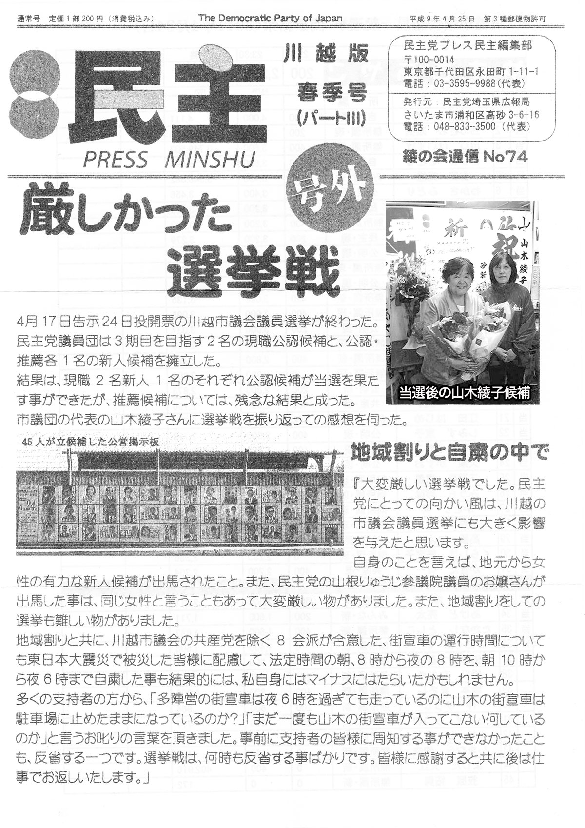やまきあやこ – 川越市議会議員 は「忘れない」・「染まらない」・「流されない」を信条に、皆様にお約束したことの実現に市議会で、精一杯発言しています。