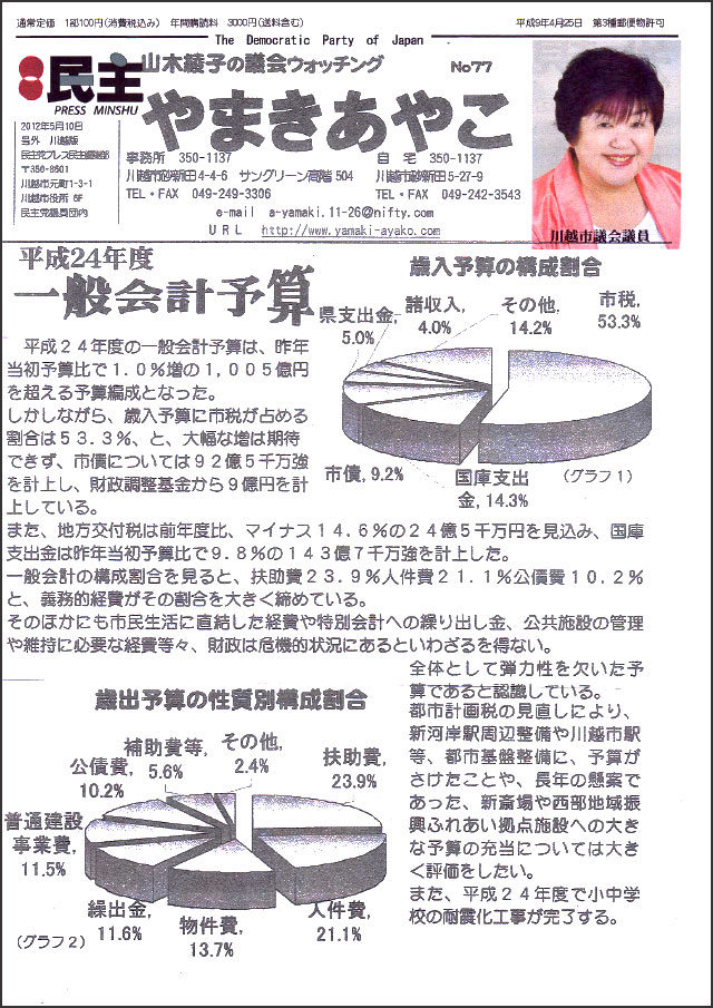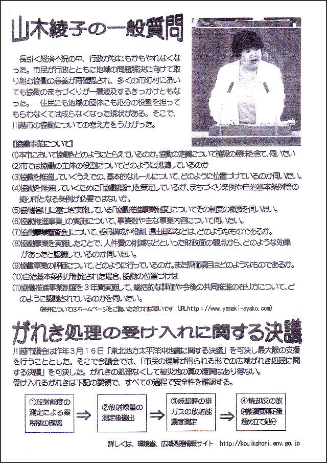 やまきあやこ – 川越市議会議員 は「忘れない」・「染まらない」・「流されない」を信条に、皆様にお約束したことの実現に市議会で、精一杯発言しています。